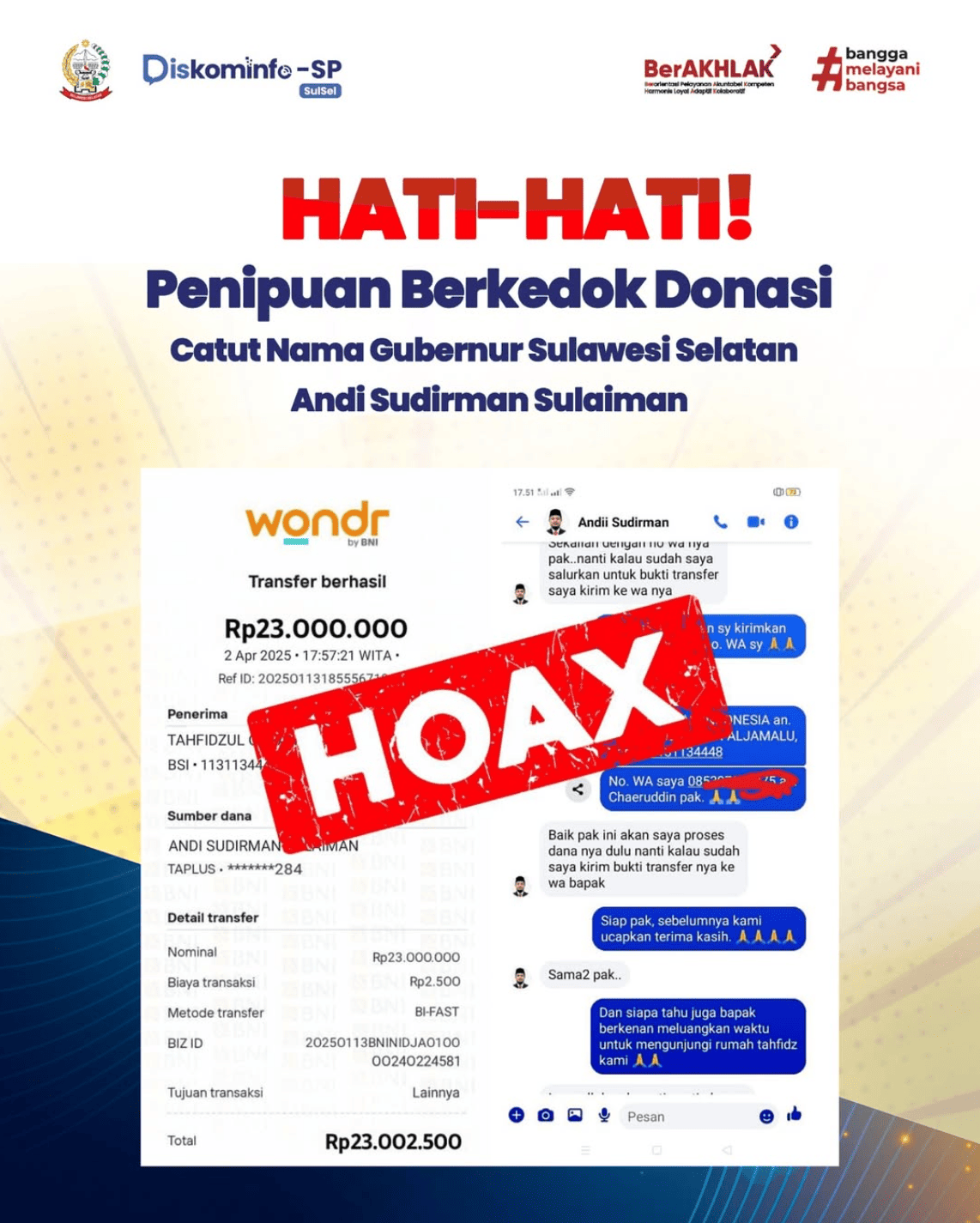3 | Himbauan Waspada Hoaks Pencatutan Nama Gubernur Sulsel | 2025-09-16 | Lihat | 0 |