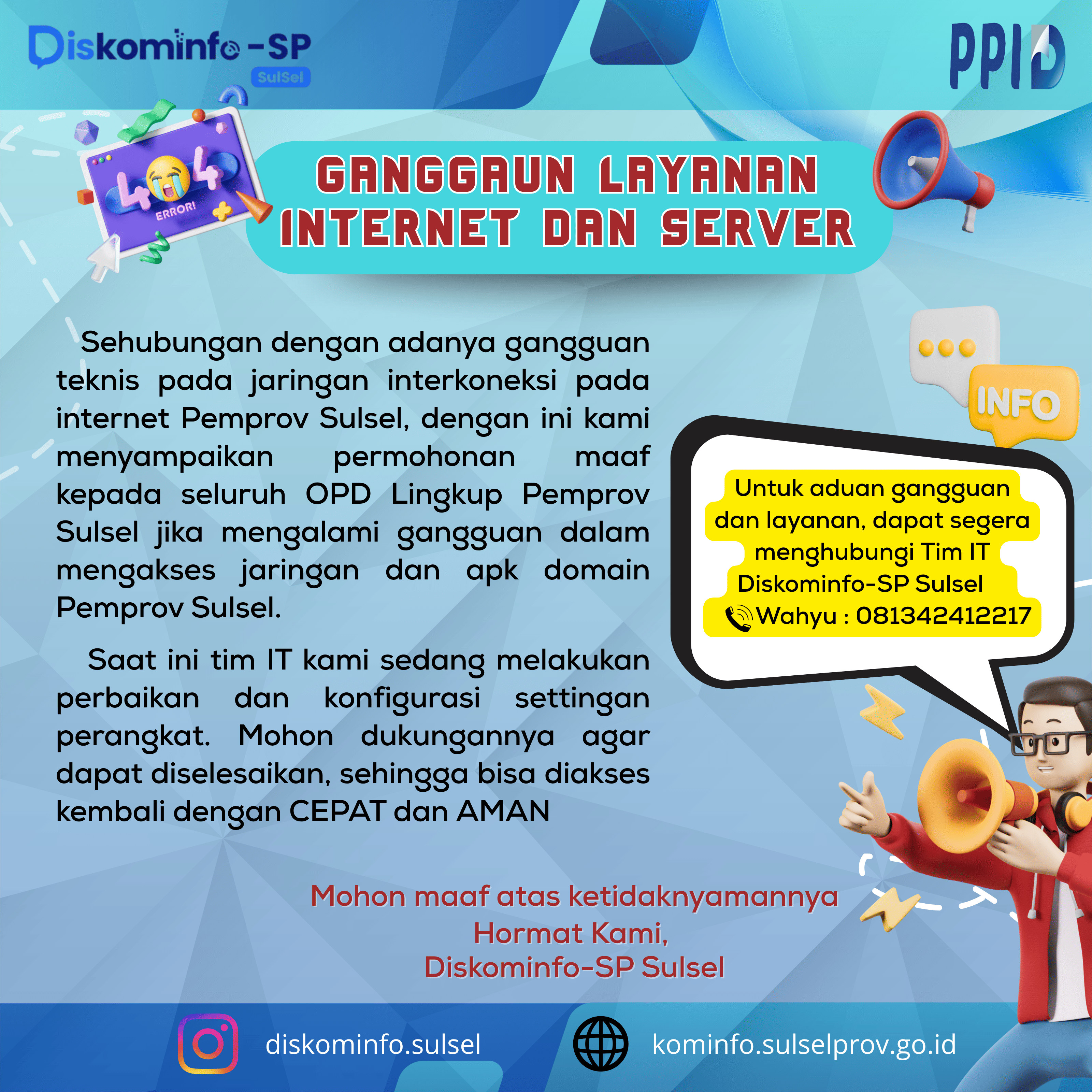 1 | Informasi Gangguan Layanan Internet dan Server Pemprov Sulsel | 2025-10-07 | Lihat | 0 |